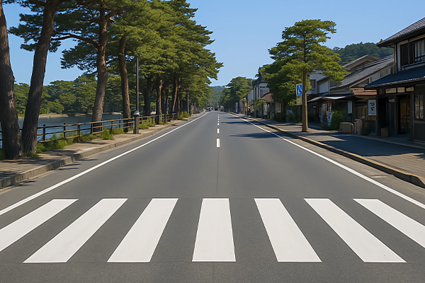 絶景スポット…それは、信号機のない横断歩道を渡る小中学生の姿である。信号機のない横断歩道で渡りたそうに立っていた小学生は、車が止まったのを確認すると、ダッシュで横断歩道を渡り、渡り切るとくるっと振り返り、頭を下げて一礼する。別な日の同じような場面で、今度は中学生が横断歩道を、自転車を押してダッシュで渡り、渡り切るとやはりくるっと振り返り、頭を下げて一礼する。そして、この光景には、松島に住み始めてから現在まで変わることなくお目にかかっている。
