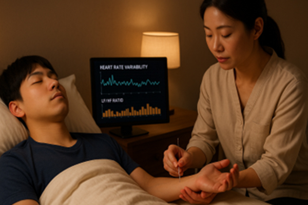 不眠症患者を対象とした研究では、“神門”というツボへの鍼刺激により心拍数が有意に減少し、心拍変動の総パワーが刺激直後に有意に増加することが報告されています。さらに、心臓の活動を観察する「心拍変動(HRV)」に関する研究をまとめてみると、健康な人では正規化低周波数(LF norm)を、健康でない人では低周波数(LF)と低周波数/高周波数比(LF/HF ratio)を鍼治療によって減少させることが明らかになりました。